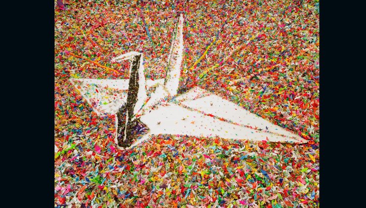 Это произведение бразильского художника и фотографа Вика Муниса. Он широко известен работами из необычных материалов (среди них — шоколадный сироп, бриллианты и мусор). Для этой картины Мунис использовал сотни тысяч бумажных журавлей, сделанных детьми по всему миру в память о жертвах бедствий, которые настигли Японию в 2011 году.