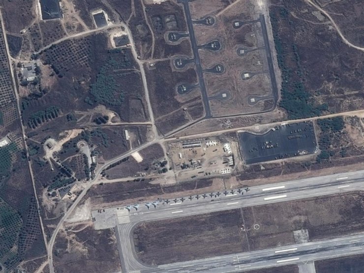 На опубликованных фото видны самолеты, выстроенные в ряд на аэродроме под сирийской Латакией. Американские военные идентифицировали их как истребители Су-30СМ и штурмовики Су-25. Всего, по данным Пентагона, Россия за последние дни в дополнение к прибывшим ранее четырем Су-30СМ перебросила в Сирию 24 самолета — 12 Су-25 и такое же количество фронтовых бомбардировщиков Су-24. Также в Сирии сейчас находятся 15 вертолетов Ми-17 и Ми-24.