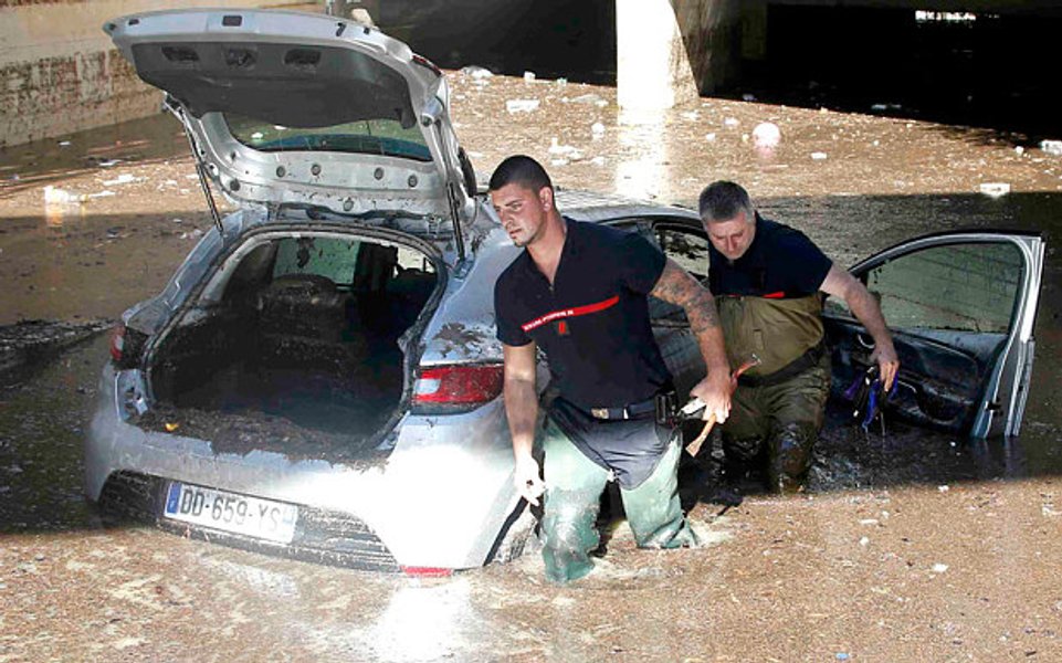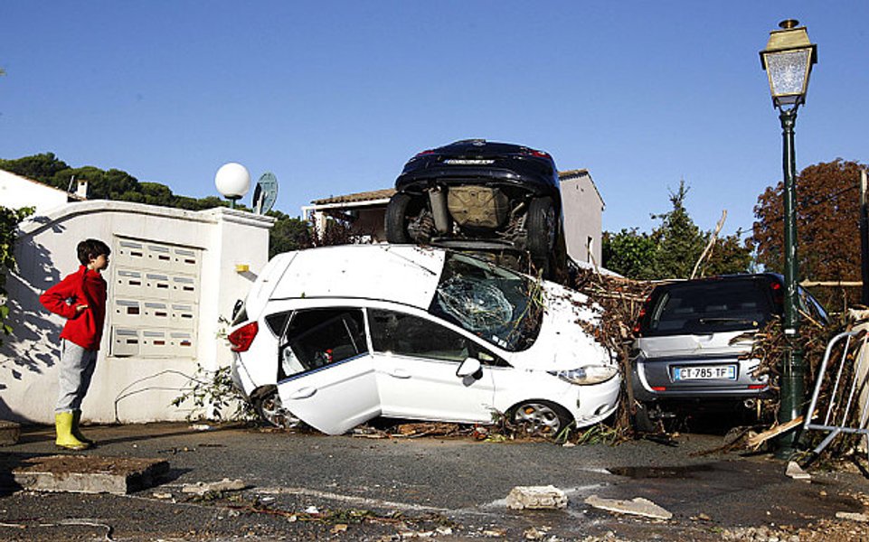 Улицы Канн все еще заполнены снесенными течением воды автомобилями, взгромоздившимися друг на друга.