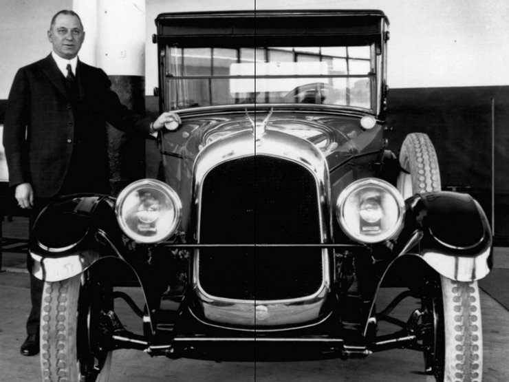 В 1924 году стараниями Уолтера Крайслера и еще трех инженеров (Фреда Зедера, Оуэна Скелтона и Карла Брира) выходит первый автомобиль тогда еще компании Maxwell Motor Corporation, который получил название Chrysler Six. Это был революционный по тем временам автомобиль с двумя главными особенностями: легким и мощным 6-цилиндровым двигателем высокого сжатия, а также впервые примененными четырехколесными гидротормозами. И все это в доступном транспортном средстве стоимостью $1565. К тому же Chrysler Six был оснащен алюминиевыми поршнями, заменяемыми воздушным и масляным фильтрами, трубчатыми передними осями (передним мостом), амортизаторами и непрямым внутренним освещением.