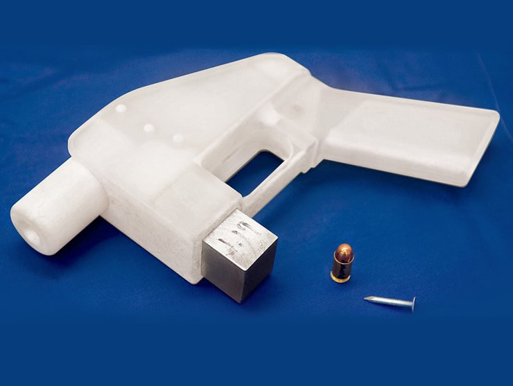 Появление новости об этом пистолете в конце 2013 года произвело эффект разорвавшейся бомбы. Речь идет о Liberator — пластиковом, полностью функциональном пистолете из 16 деталей, каждая из которых легко печатается на 3D-принтере за исключением бойка, который делается из обойного гвоздя.