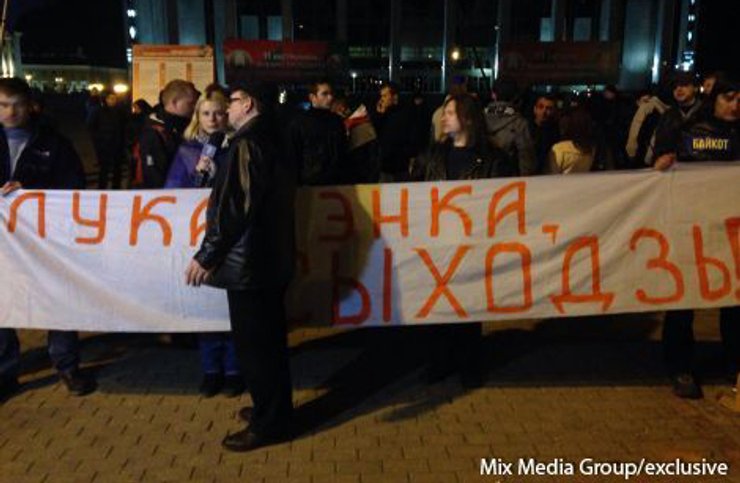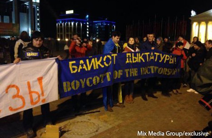 И все же такой политический расклад устраивает далеко не всех. По подсчетам наблюдателей из Белорусского Хельсинкского комитета, накануне основного дня голосования 860 человек вышли на улицы Минска под предлогом Шествия национального флага. Фактически это была акция протеста против фальсификации выборов режимом Лукашенко, созванная бывшим политзаключенным и кандидатом в президенты на выборах 2010 года Николаем Статкевичем.