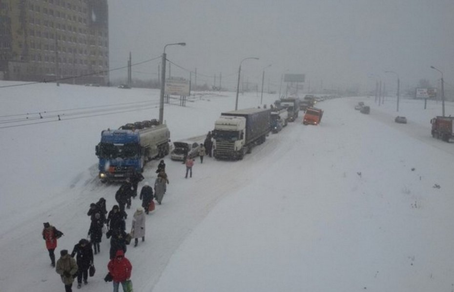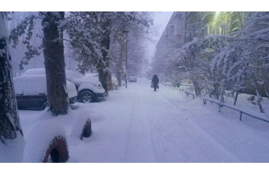 Месячная норма осадков в виде снега выпала за сутки в Омске, в результате чего город встал в десятибальные пробки, передает РИА "Новости".