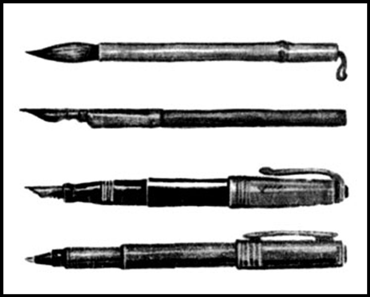 Первые предметы для письма человек стал использовать еще в четвертом тысячелетии до нашей эры. Это были глиняные дощечки, смоченные водой, и палочка из дерева, бронзы либо кость. Позже люди стали писать по воску металлическим стилусом. Данный способ письма просуществовал практически восемнадцать веков, пока не был изобретен пергамент. Писали по нему птичьим пером, которое обмакивали в чернила. А в девятнадцатом веке их вытеснили перьевые ручки.