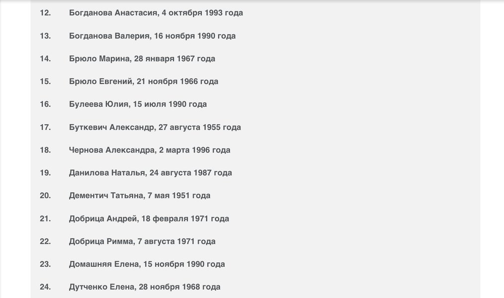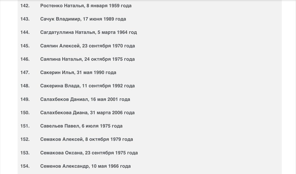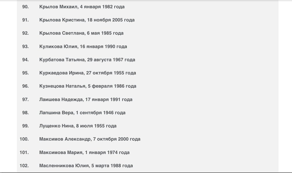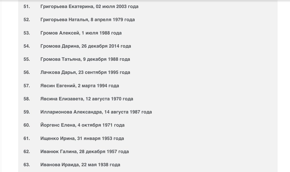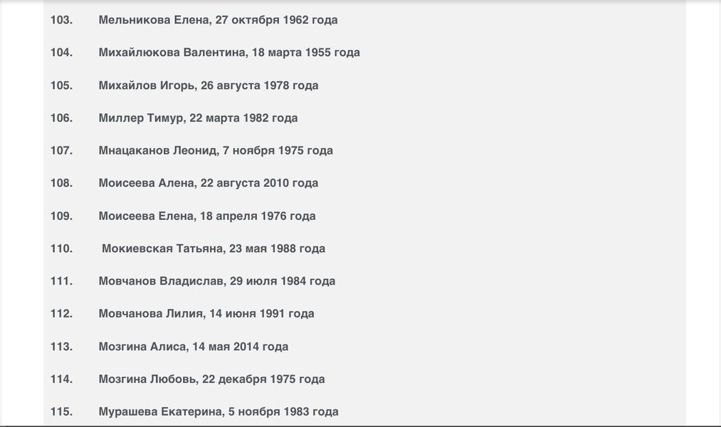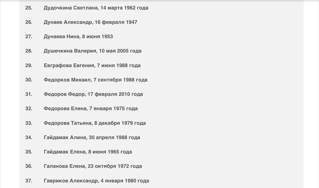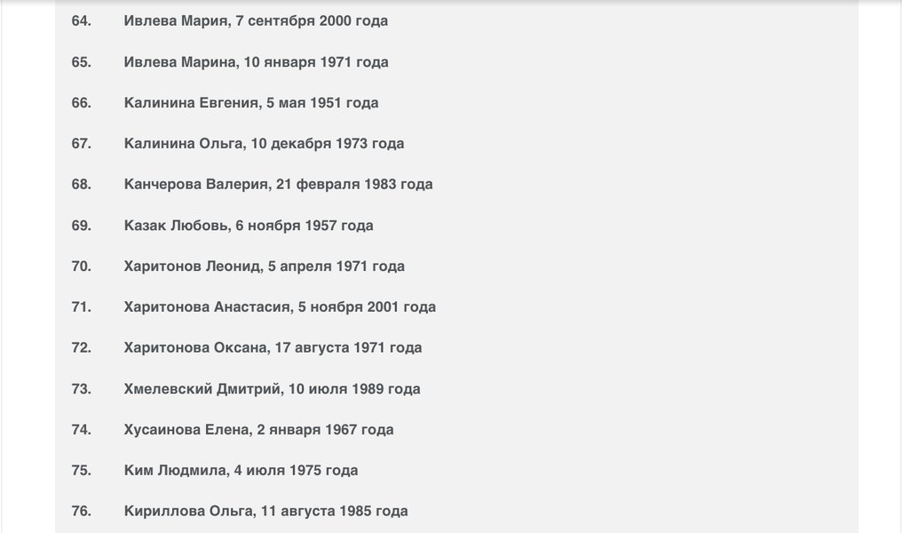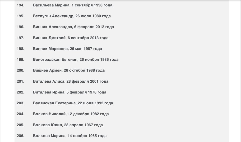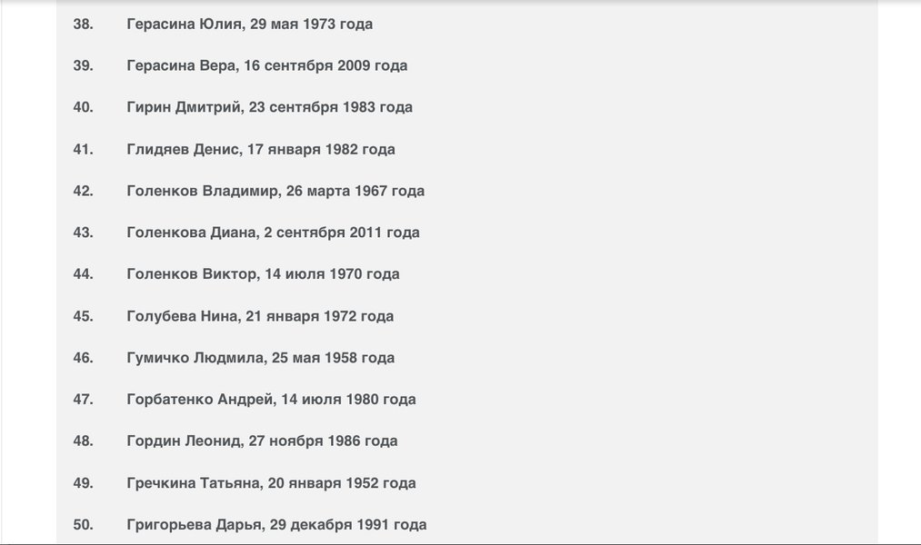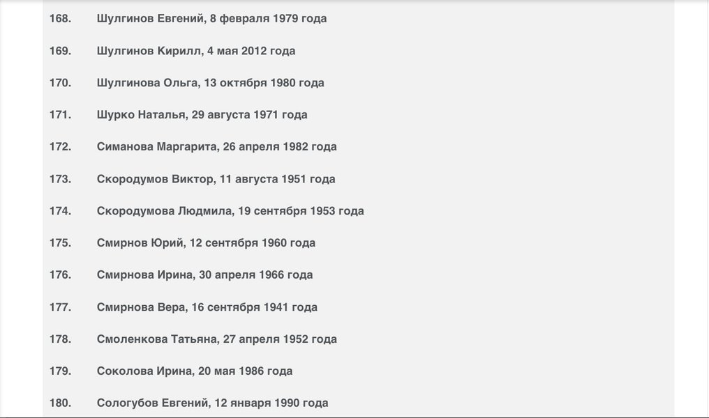 Ниже следует список пассажиров с датами рождений, распространенный на сайте МЧС. Список имен был опубликован латиницей, в связи с чем при переводе в кириллицу могут возникать неточности в фамилиях.