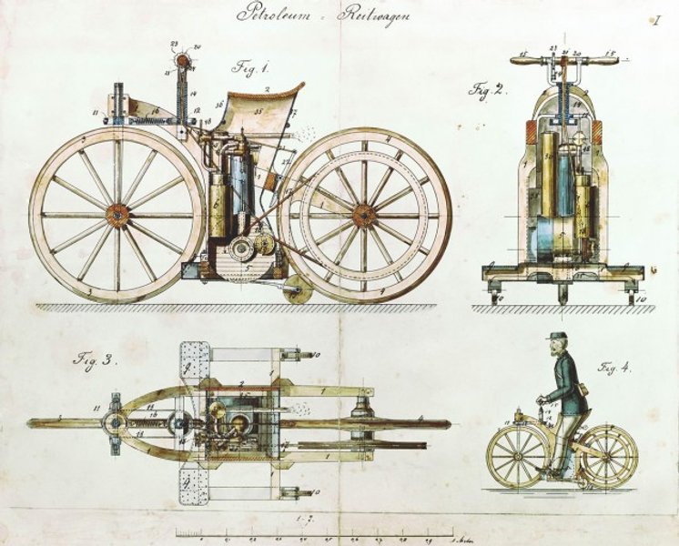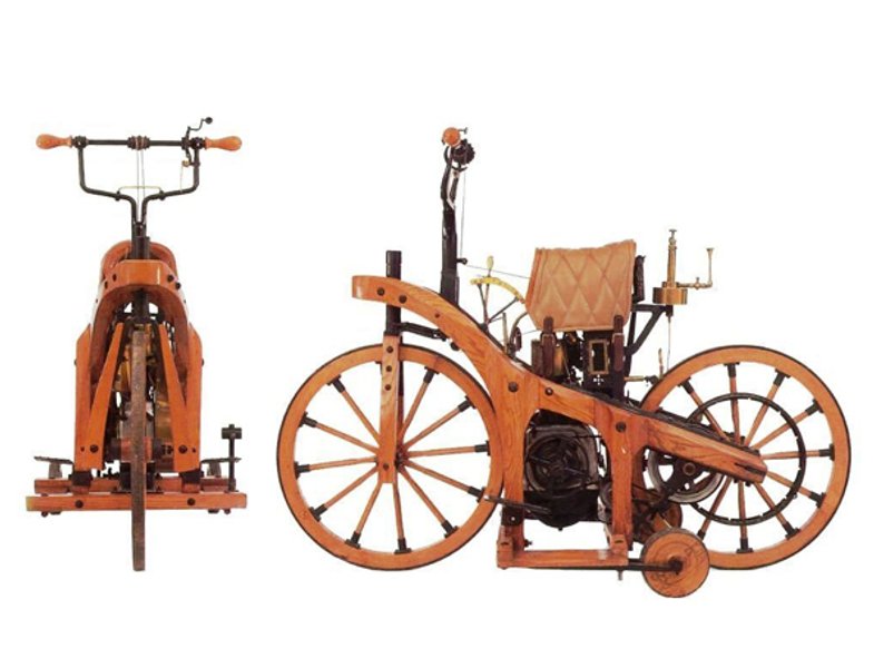 10 ноября 1885 года Готлиб Даймлер и Вильгельм Майбах создали предшественник мотоцикла – деревянный велосипед с бензиновым двигателем. Изобретение получило название Reitwagen