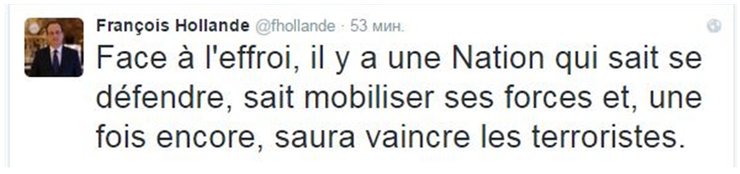 "Столкнувшись с ужасом народ знает, как защитись себя, как мобилизовать все силы и снова победить террористов", - Франсуа Олланд, президент Франции