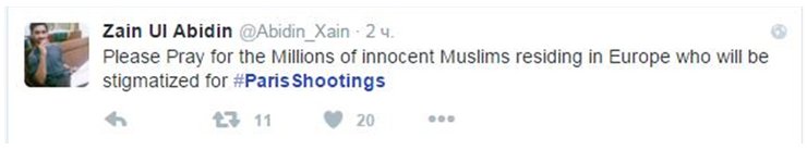 "Пожалуйста, помолитесь за невинных мусульман, живущих в Европе, которых будут гнобить из-за случившегося в Париже", - Зайн Аль Абидин