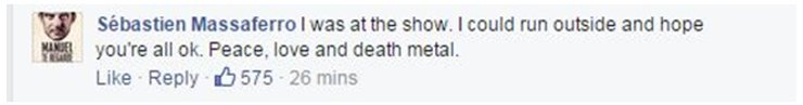 "Был на шоу. Была возможность покинуть здание, надеюсь, вы все в порядке. Мир, любовь и дэт-метал", - Себастьян Масаферро, очевидец