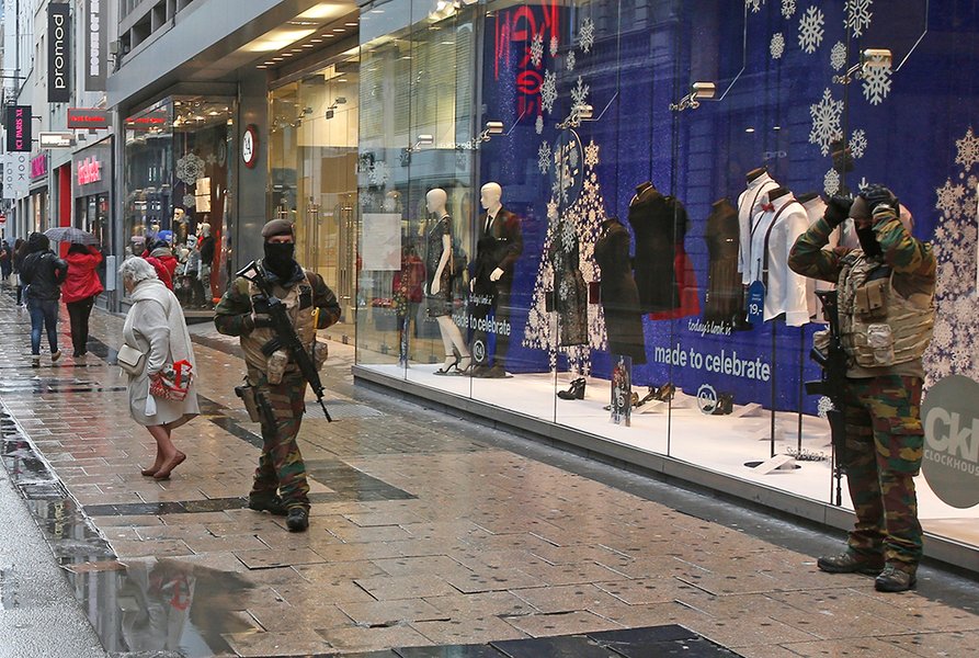Улицы патрулируются войсками, а столичное метро закрыто второй день подряд. Один из разыскиваемых, Салах Абдеслам, связан с нападениями в Париже.