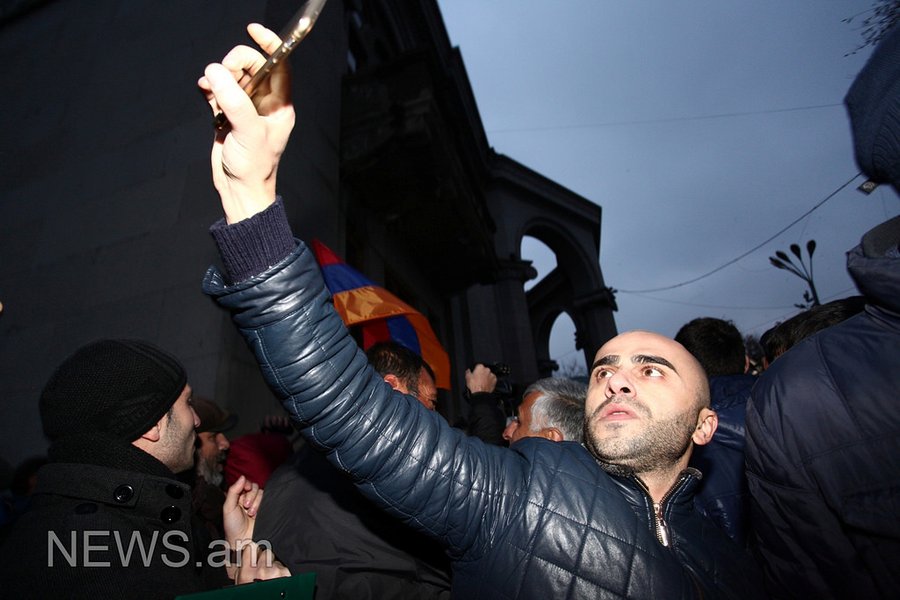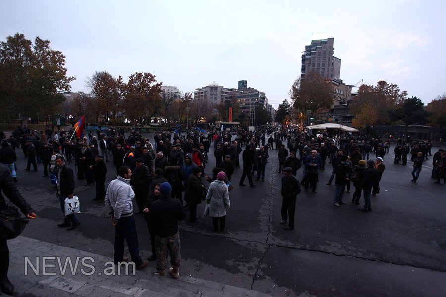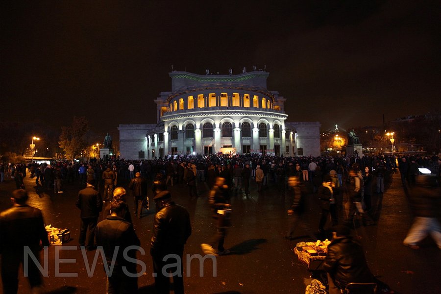"Ночевать на площади будем посменно", - сообщил Ованнисян, отметив, что люди не разойдутся, пока не добьются смены власти.