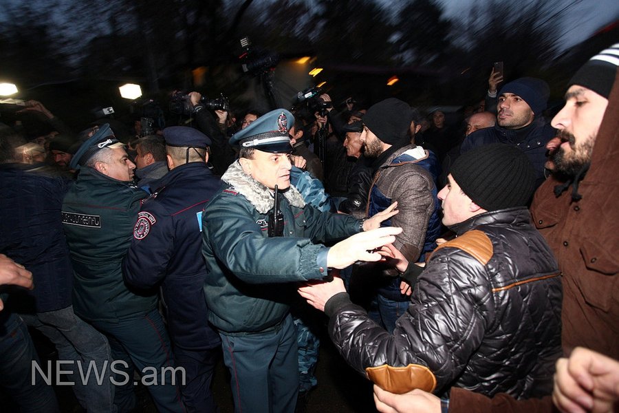 Накануне между полицейскими и участниками шествия фронта общественного спасения "Новая Армения" в Ереване произошла небольшая потасовка.