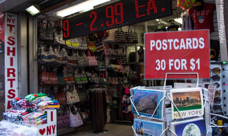 В Нью-Йорке за доллар можно купить кусок пиццы,лимон или два маленьких лайма. Еще можно купить 30 открыток с видами Нью-Йорка, вот только марки к ним продаются отдельно.