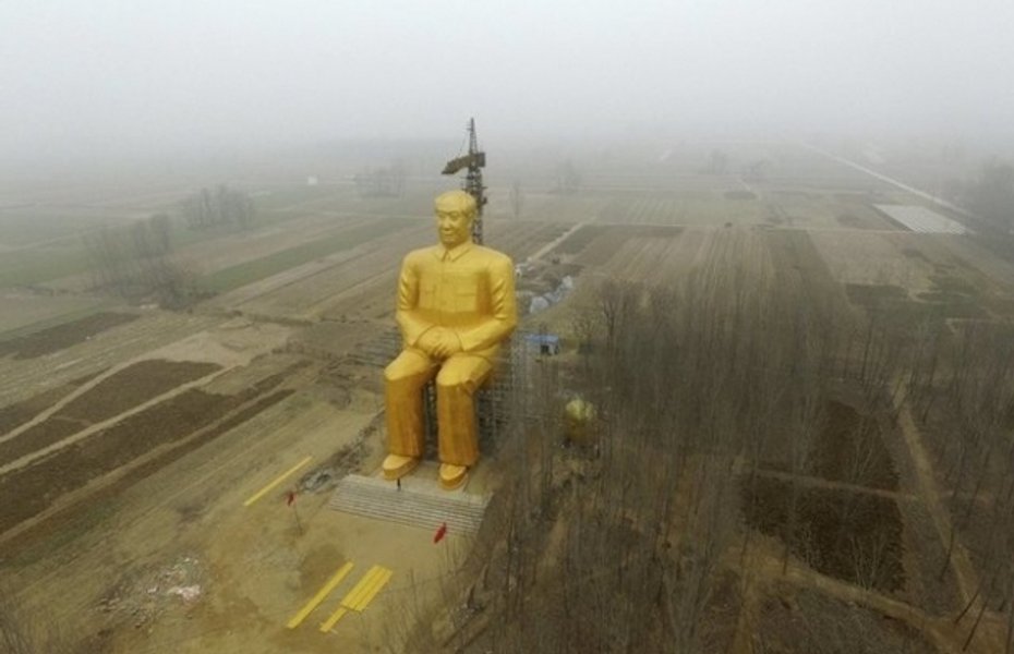 В китайской провинции Хэнань посреди полей у небольшой деревни строят гигантскую позолоченную статую первого председателя КНР Мао Цзэдуна.