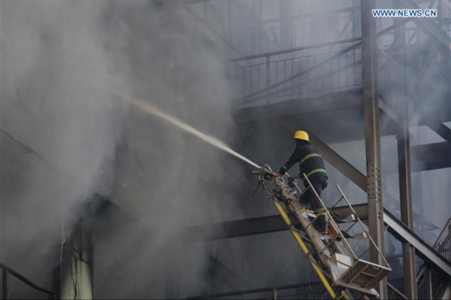 Тушение пожара на рынке в Янгоне