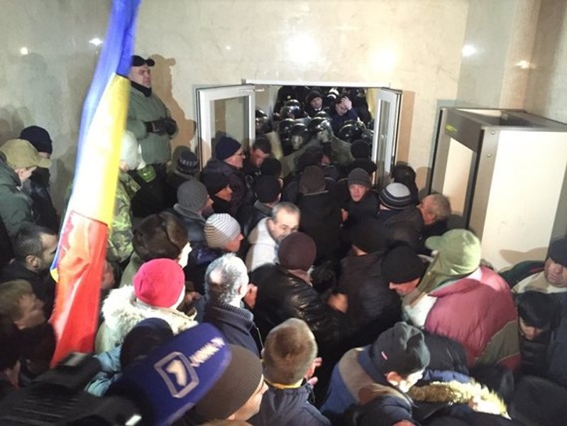В ответ оппозиция - как проевропейская так и пророссийская - объявила тотальную мобилизацию. Протестующие окружили здание парламента и, прорвав полицейские кордоны, вошли внутрь.