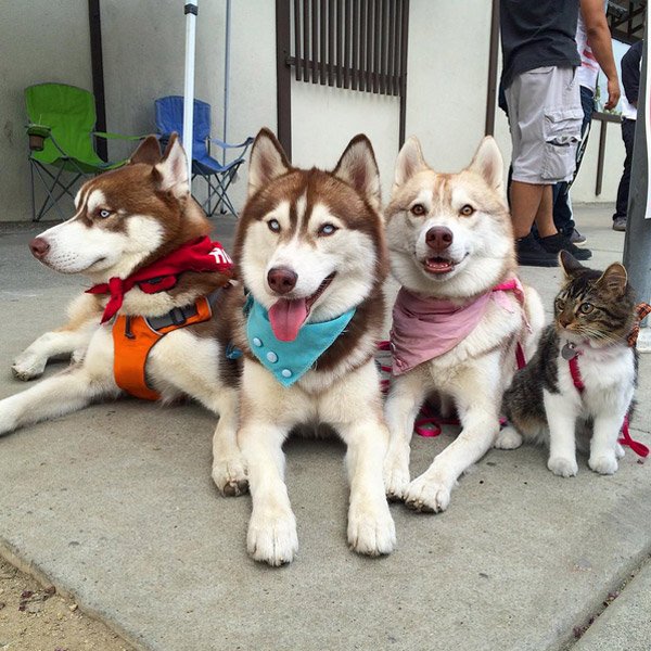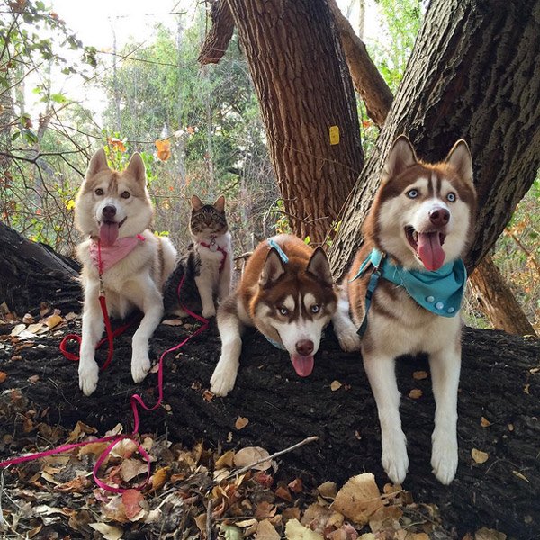 Рози слушается команд, играет с фрисби, не боится воды и обладает рядом исключительно собачьих привычек. Пушистая кошечка, которая, похоже, чувствует себя настоящим хаски, стала полноценным членом собачьей семьи.