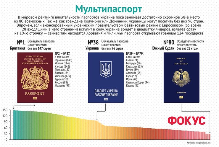 В мировом рейтинге влиятельности паспортов Украина пока занимает скромное 38-е место из 80 возможных - украинцы могут посетить без виз 96 стран
