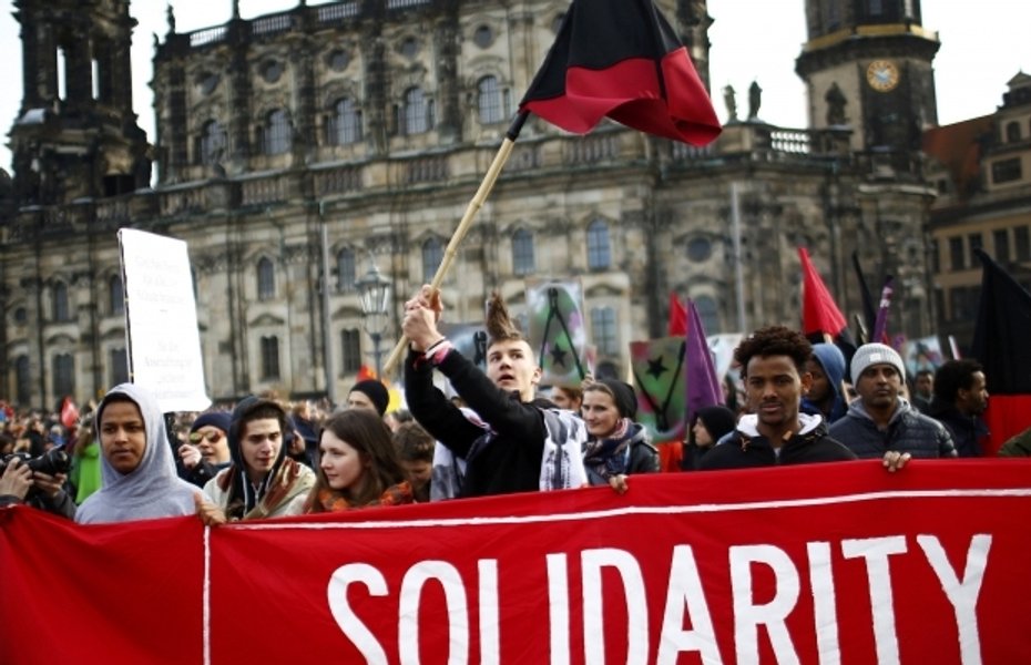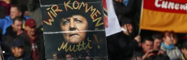 Во время шествия в Дрездене можно было услышать лозунг: "Меркель должна уйти!" - участники критиковали политику канцлера Ангелы Меркель относительно беженцев.