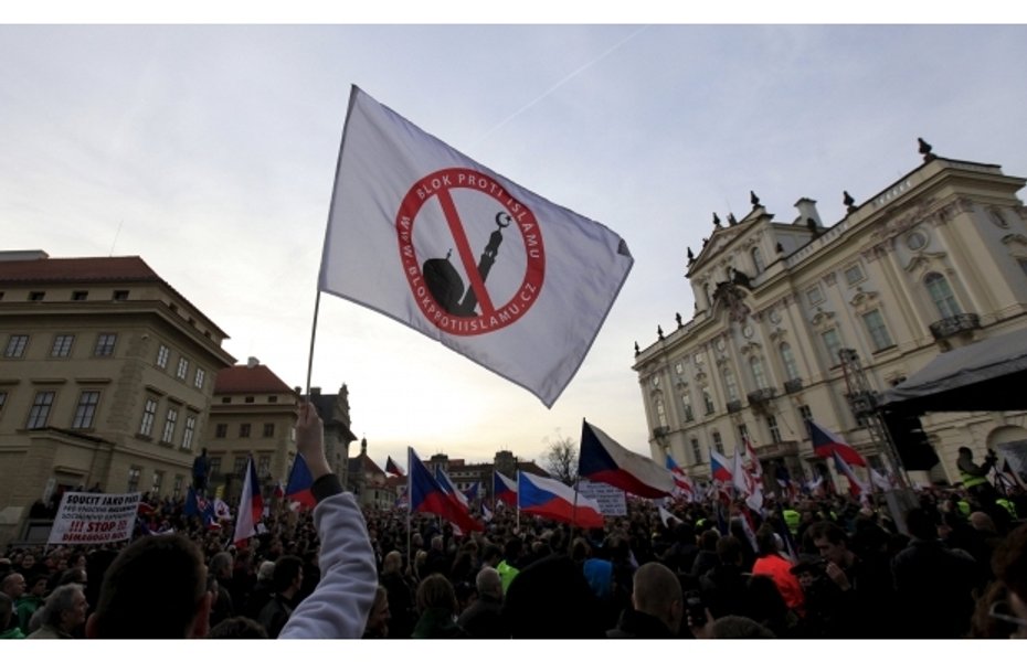 Исламофобы выступили с лозунгом "Нет иммиграции - стоп меркелизации". "Ислам - это не религия, это - фашистская идеология", - заявил корреспонденту агентства dpa один из сторонников Pegida, тогда как его оппонент сказал: "Мы хотим бороться с ростом ксенофобии в чешском обществе".