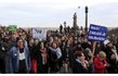 На митинге были также заметны несколько российских флагов и транспаранты с призывами: "Мир с Россией", "Прекратите войну против Сирии".