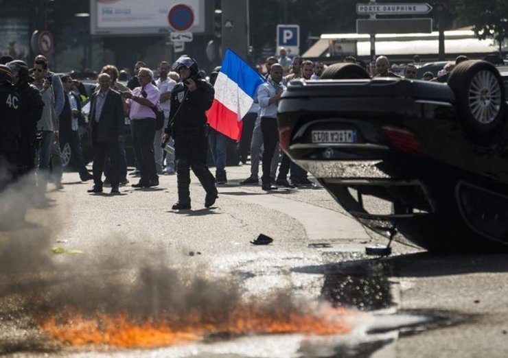 В столице Франции таксисты в знак протеста блокировали подъезды к нескольким терминалам аэропортов Шарль-де-Голль и Орли, перекрыли дороги возле вокзалов в центре города и транспортные узлы на окраинах. Всего, по некоторым данным, в ходе беспорядков было повреждено около 70 автомобилей, а 10 человек были арестованы полицией.