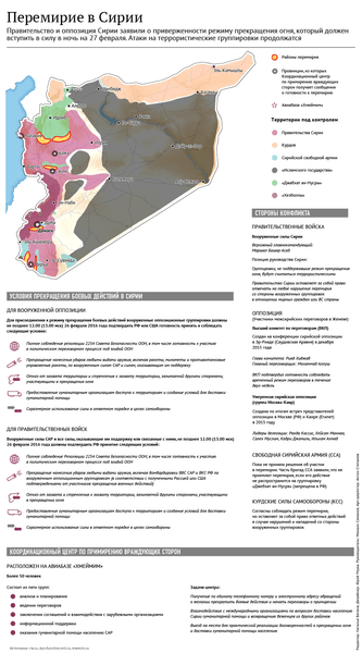 Напомним, 23 февраля президент Сирии Башар аль Асад принял условия перемирия, о котором накануне договорились США и Россия и которое вступает в силу 27 февраля.