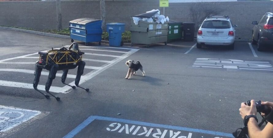 Механический четвероногий робот по имени Спот не понравился домашнему животному: пес облаял его и несколько раз попытался на него прыгнуть.