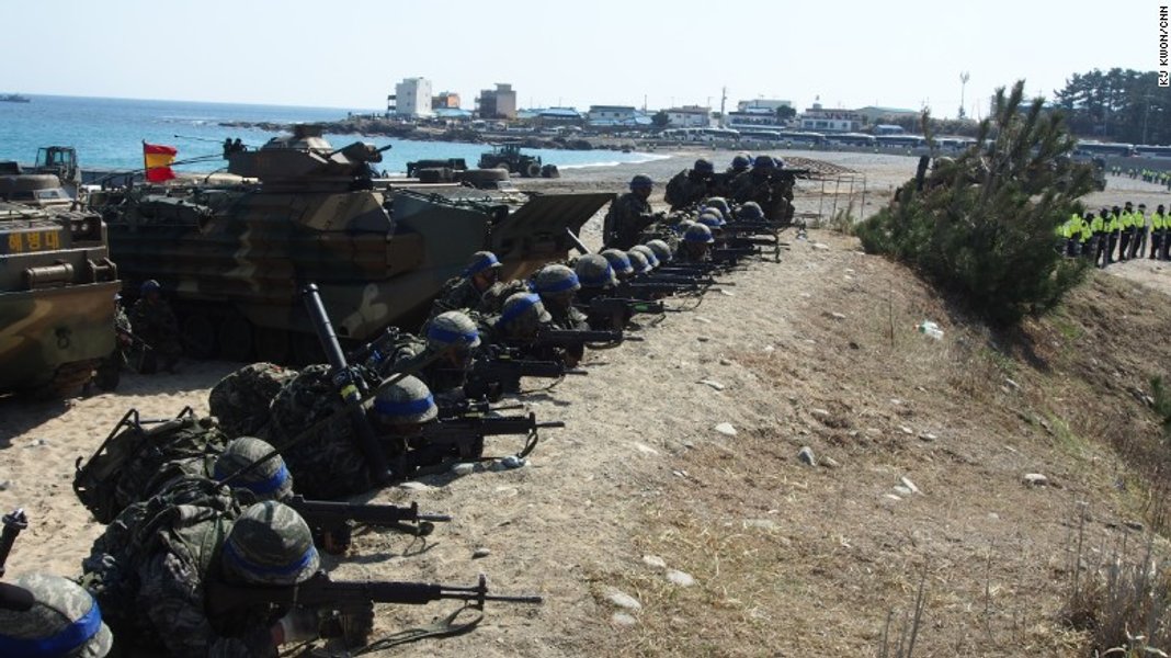 Издание отмечает, что 12 марта южнокорейские и американские морские пехотинцы и матросы провели учения по высадке морского десанта.