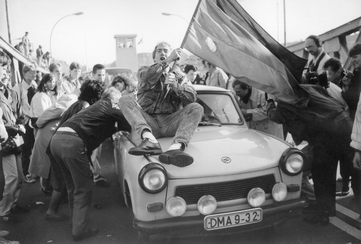 Фотограф: Бриджит Хисс, 1989. Свадебный кортеж пересекает Борнхольмский мост во время падения Берлинской стены. 10 ноября 1989 года