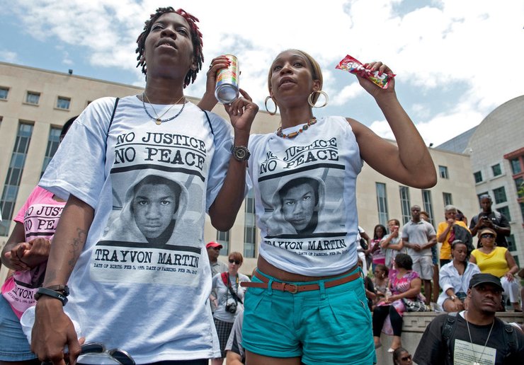 Фотограф: Мэри Ф. Калверт, 2013. Протестующие Таниша Роллинс и Николь Коуэн держат чай со льдом и Skittles во время акции "Правосудие для Трейвона Мартина" в Вашингтоне (округ Колумбия). 20 июля 2013 года