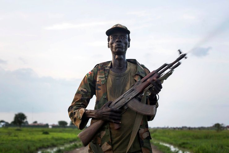 Фотограф: Камиль Лепаж, 2013. Член племени Лу Нуэр возвращается в свое родное село в Южном Судане после военных действий против повстанческой группы Яу Яу. 23 июля 2013 года