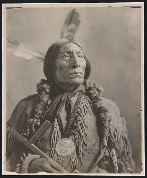 Фотограф: сестры Герхард, 1904. На фото — Волчья Накидка, вождь южных шайеннов, который получил медаль мира от 23-го президента США Бенджамина Гаррисона. Некоторые уверяют, что именно его профиль был изображен на 5-центовой индейской монете. 1904 год