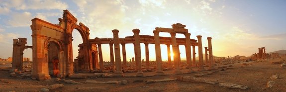 Античный город Пальмира - памятник Всемирного наследия ЮНЕСКО - оказался под контролем террористов группировки "Исламское государство" в мае 2015 года. Перед тем как оставить город, была эвакуирована большая часть его жителей и наиболее ценные исторические реликвии центрального музея Пальмиры. Однако часть культурного наследия была уничтожена боевиками.