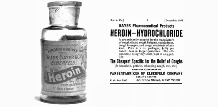 Более "легким" аналогом кокаина являлся диацетилморфин, впервые синтезированный в 1874 году английским химиком Алдером Райтом. В качестве лекарства от кашля диацетилморфин стал предлагаться немецкой фармацевтической компанией Bayer в 1898 году под торговой маркой "Героин".