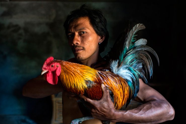 Бой петухов — важная часть балийской культуры, первые упоминания о них датируются Х веком. Считалось, что смерть петуха должна ублажить злых духов. Фотограф: Рубен Сальгато Эскудеро, третье место в категории "Портрет"