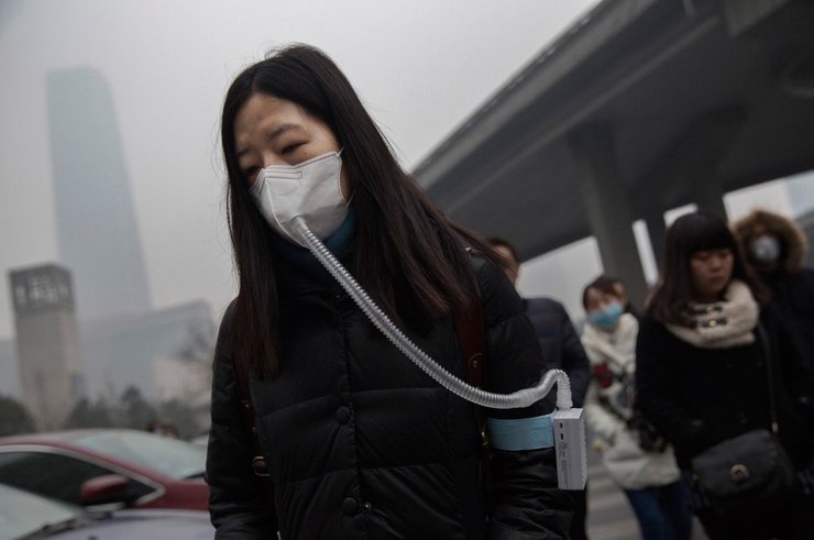 Горожанка идет на работу с фильтром и в маске. Причина — загрязнение воздуха в декабре в Пекине. Фотограф: Кевин Фрэйер, второе место в категории "Актуальные проблемы"