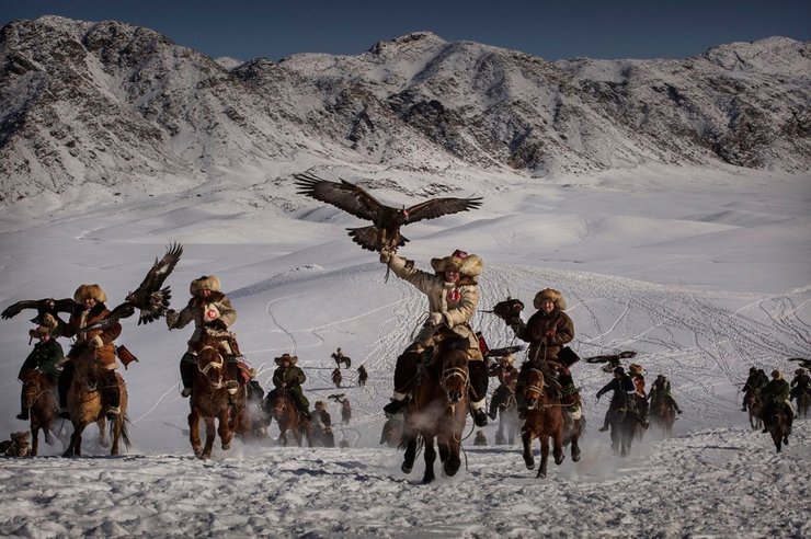 Традиционная охота с орлами в рамках январского фестиваля в провинции Хиньянг, Китай. Фотограф: Кевин Фрэйер, победитель в категории "Окружающая среда"
