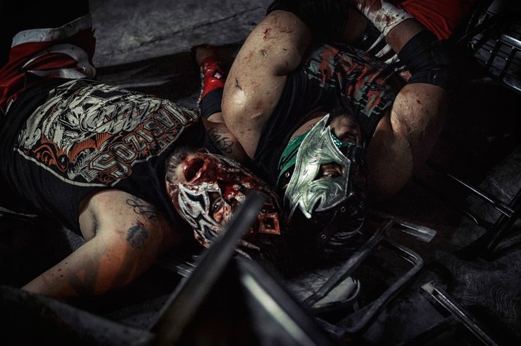 Жестокие рестлинговые бои, которые из-за частых несчастных случаев были запрещены в Мехико-Сити, все еще разрешается организовывать за пределами города. На фото видно, как обычная автомойка превращена в бойцовскую арену. Публика приветствует бойцов-рестлеров как героев. Фотограф: Анник Донкерс, третье место в категории "Спорт"