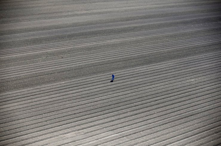 Фермер обходит пострадавшие от засухи поля под Лос-Баносом (штат Калифорния). Фотограф: Люси Николсон, третье место в категории "Актуальные проблемы"