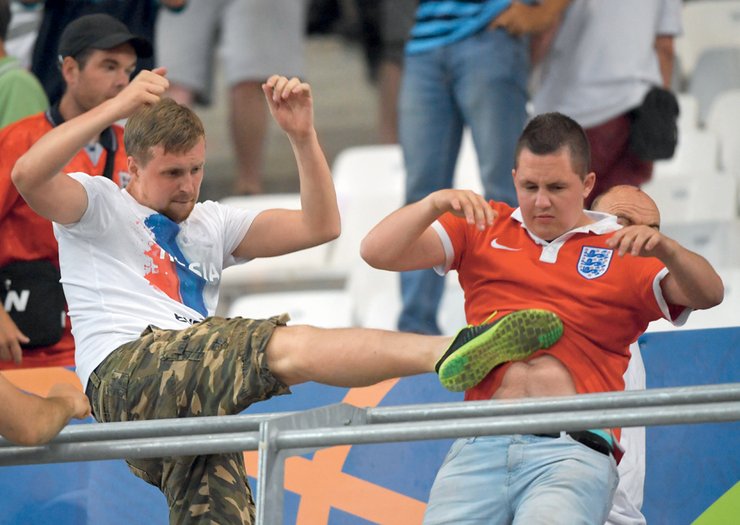 Но даже английские болельщики признаются, что они не сталкивались с такой жестокостью и организованностью, которую демонстрируют российские спортивные туристы. Драки, устроенные ими до, во время и после матча сборных Англии и России в Марселе, поразили всех. Говорят о группе в 150–300 человек с отличной спортивной подготовкой, в одинаковых футболках и с сумками на поясе — очевидно, для оружия, включая ножи. Это не традиционный типаж хулигана-болельщика, нетрезвого и с большим пивным животом, а настоящий спецотряд, совершающий набеги на места скопления "вражеских" фанов и крушащий все подряд. В то время как веселые английские болельщики шумят, распевая по Марселю: "Где же ты, ИГИЛ?", на них нападают не шахиды, а российские беспредельщики, мстящие Западу за все свои унижения, и полиция оказывается практически бессильной.