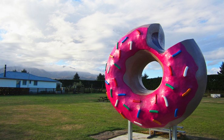 В честь выхода в прокат полнометражной версии мультсериала "Симпсоны" в 2007 году в Новой Зеландии был возведен памятник фиолетово-розовому пончику. Местные жители восприняли этот архитектурный дар без особого энтузиазма. Спустя 2 года прославившийся на весь мир пончик был сожжен вандалами. По мнению большинства людей, памятник не приносил эстетического удовольствия, не содержал в себе никакого смысла и лишь портил пейзаж.