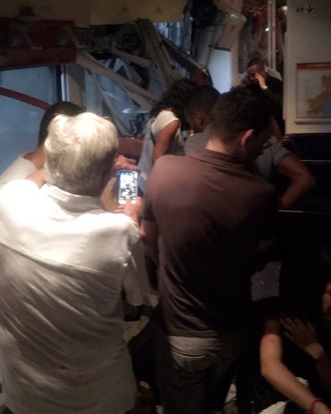 На фотографиях пользователей соцсетей с места инцидента видно, что в результате столкновения в поезде были выбиты стекла.