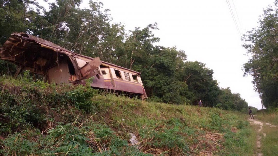 Ранения получили двое железнодорожников и женщина-пассажир. Поезд направлялся в Бангкок.