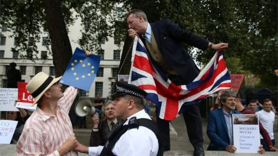 В то же время, в одной из точек, где проходил маршрут протестующих, состоялась и акция в поддержку Вrexit.