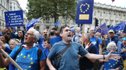 Активисты с самодельными плакатами и голубыми флагами ЕС прошли от Гайд-парка к зданию парламента, где 5 сентября будут обсуждать - состоится ли повторный референдум о членстве в ЕС. Онлайн-петиция в его поддержку набрала более 4 млн подписей.