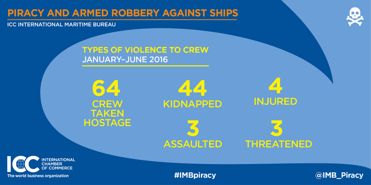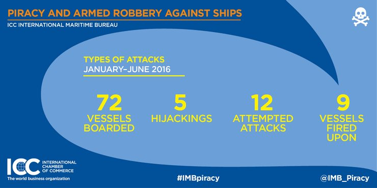 Так с июля по сентябрь 2016 года в открытом море были осуществлены 42 пиратских нападения. А всего в текущем году было зафиксировано 141 нападение пиратов, что на четверть меньше, чем за аналогичный период 2015 года.