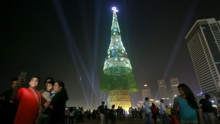 Власти Шри-Ланки заявили, что в столице страны, городе Коломбо, установили самую большую в мире искусственную елку.
