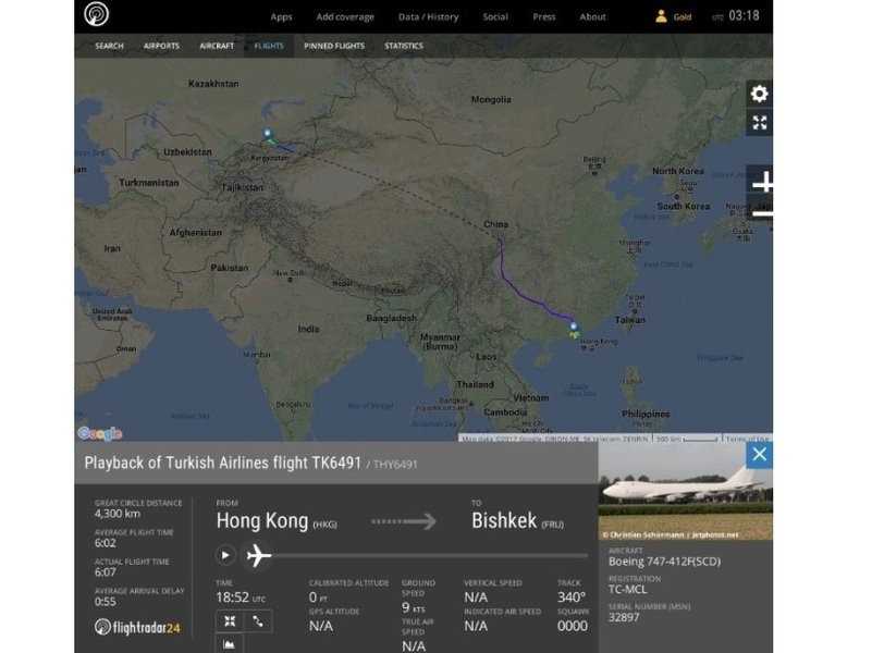 Грузовой самолет потерпел крушение в 3:31 (по киевскому времени). Лайнер совершал рейс из Гонконга в Бишкек.