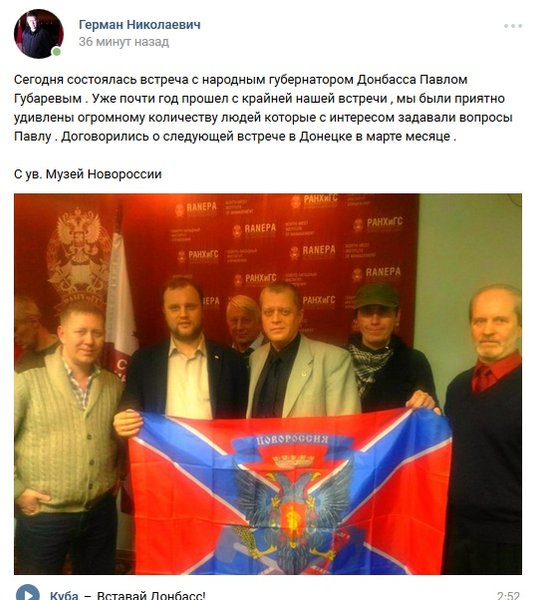 О погроме Владимиров пока ничего не написал на своей странице в социальной сети "ВКонтакте". Он опубликовал фото со встречи с бывшим "народным губернатором" Павлом Губаревым.